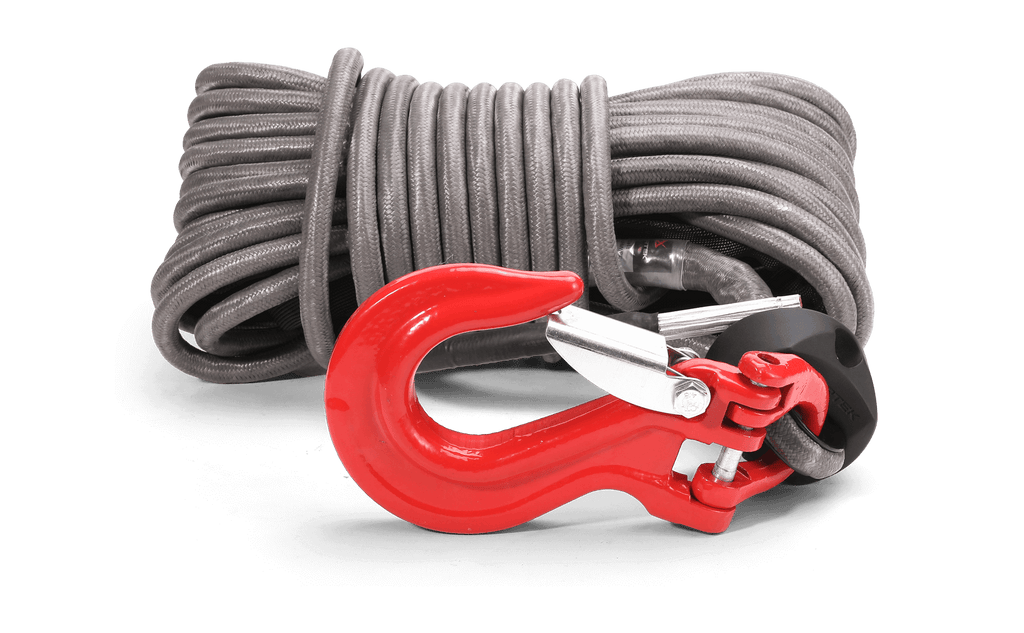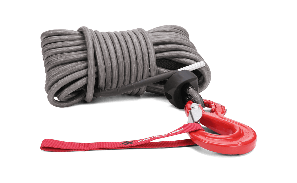 Ce kit complet de câble de treuil comprend une corde synthétique haute résistance Armortek Extreme de 9/16" x 65,6' (14 mm x 20 m), un crochet robuste, un bloque-corde et une sangle de maintien des mains, vous offrant tout ce dont vous avez besoin pour un treuillage sûr et fiable.