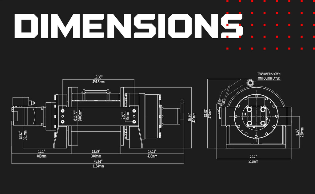 • Orientation réversible : Ces treuils peuvent être montés avec le moteur à gauche ou à droite avec l'enroulement du câble par le haut ou le bas.